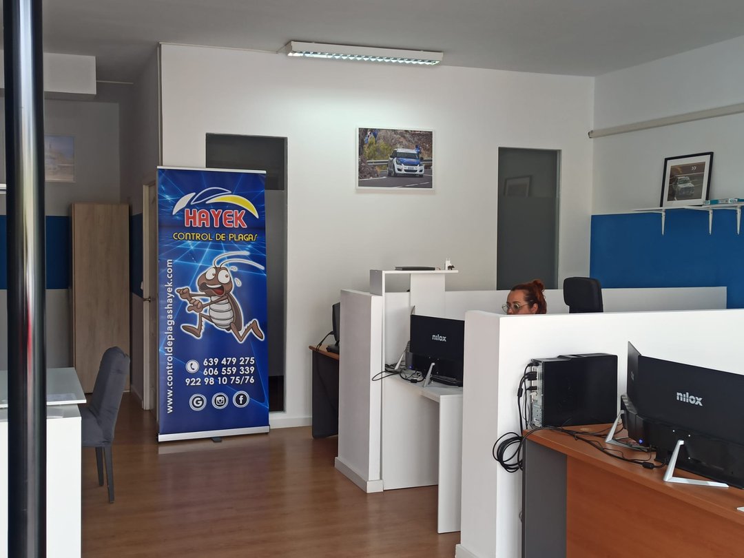 Hayek Control de Plagas en Tenerife es una empresa de desratización y desinsectación en Tenerife, especializada en control de plagas con soluciones eficaces y seguras. Combatimos plagas de cucarachas, roedores y otras especies que amenazan la salud y el bienestar. Nuestro equipo realiza fumigación de cucarachas y control de plagas de bichos de la madera, adaptándonos a cada cliente con un servicio profesional, cercano y comprometido. Usamos técnicas modernas y productos de calidad para mantener hogares y negocios libres de plagas.